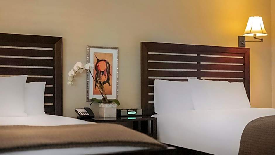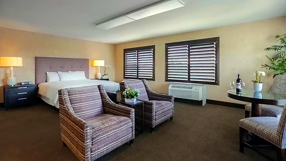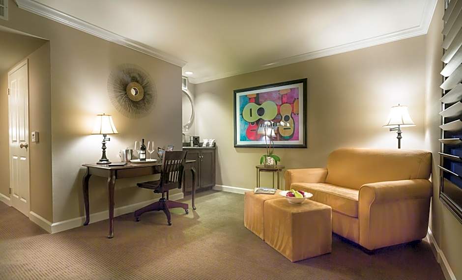 This spacious air-conditioned deluxe suite includes a full-size bathroom with granite counter-tops and dual vanity mirrors, an LCD TV, an iHome docking station and a mini-fridge.